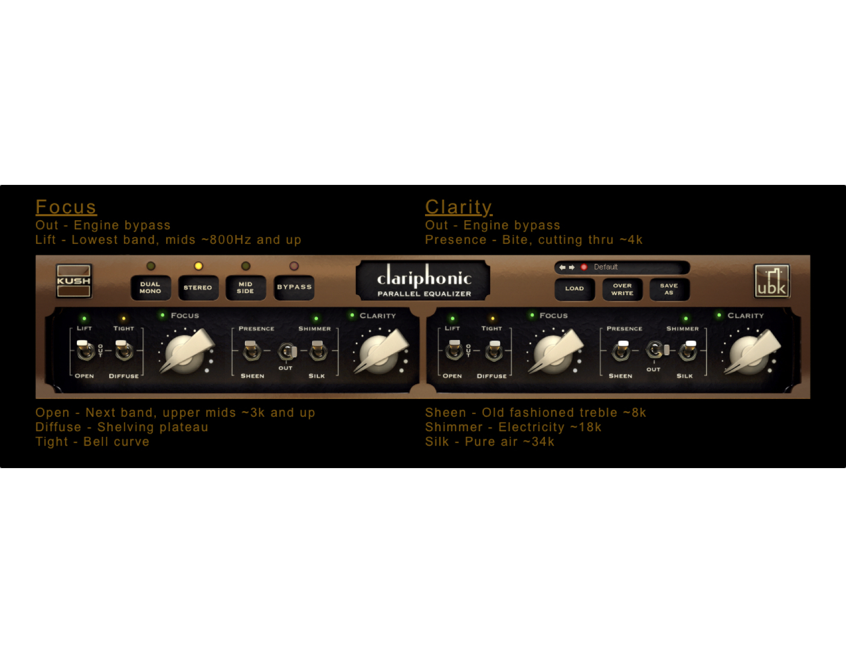 I love Pro-Q3, it’s great for surgical work. The Clariphonic is modeled after a hardware unit and is a Parallel Mastering EQ. I think of it more in terms of a “character” device. Its bands are fixed with the express purpose of brightening/heightening clarity and it does just that in a way that is very effective and pleasing. you can work on the stereo signal, or decide to widen the stereo field by brightening only the sides; the settings for stereo/mid-side are retained separately, so it’s easy to A/B your choices. As an effect it can be easily overdone, but it really is a desert island kind of plug.