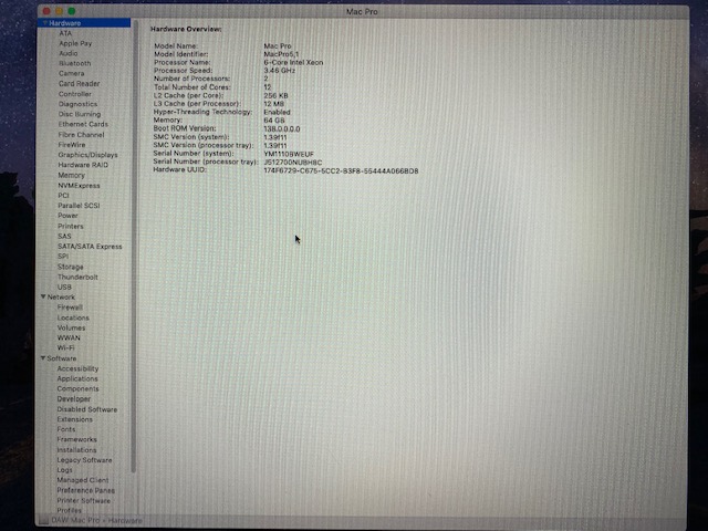 MacPro 5,1 3.46Ghz 12 core, 64GB Ram, SSD, USB3, Radeon RX580, Mojave